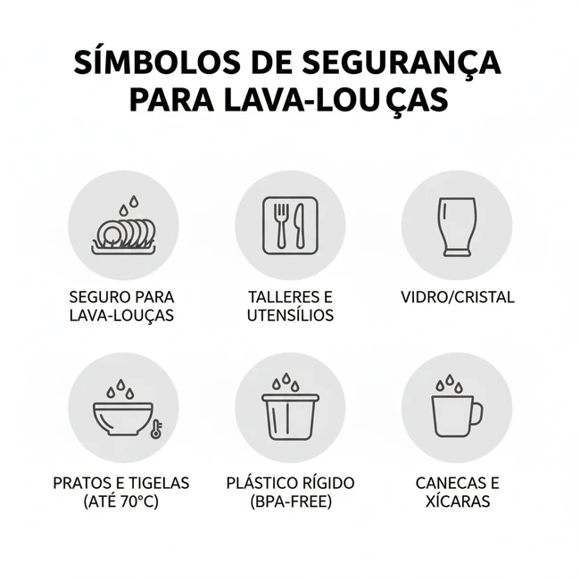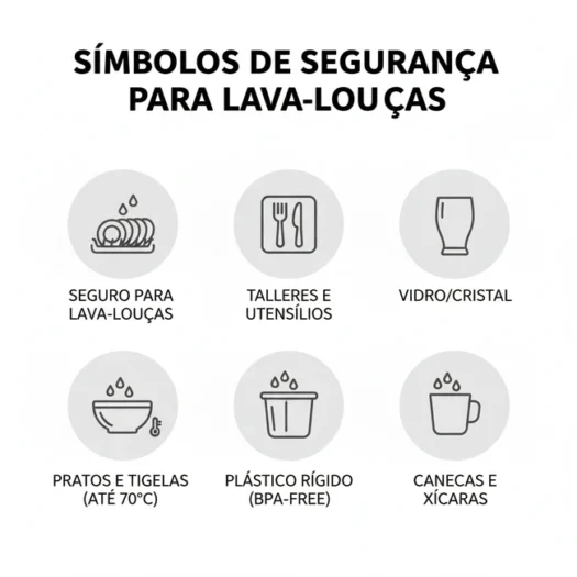 - Na Embalagem ou Manual: Se o item for muito pequeno ou não tiver espaço, o símbolo “Lava-Louças Segura” (ou “Dishwasher Safe”) estará na embalagem original ou no manual de instruções.